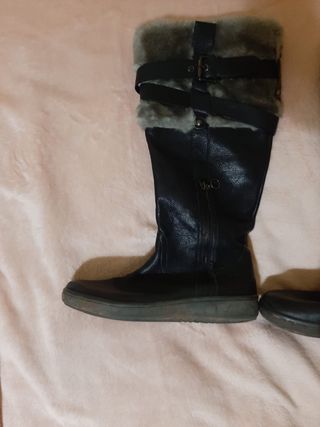 Botas altas de caña de la marca Pepe Jeans. Son planas y tienen un diseño elegante. - No llegan hasta la rodilla, quedan por debajo. - Detalle de elástico en la caña. - Acabado en ante. - Cierre de cremallera lateral. -El color del talón y puntera es así, no es desgaste. - Las compré porque el diseño me encanta, pero soy muy bajita para esa caña.