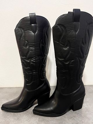 Botas altas de tacón con un solo uso. Son muy cómodas. - Tacón grueso. - Cierre de cremallera lateral. - Detalle de cordones en la parte trasera.