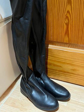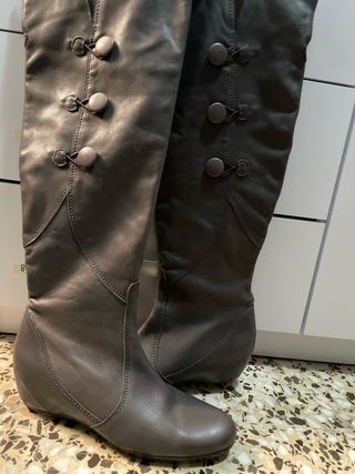 Botas altas por encima de la rodilla, con elástico para que no se bajen.