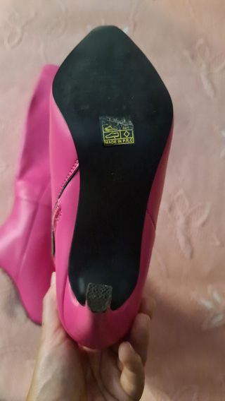 Botas de tacón color rosa talla 38,sólo 1 uso. Adentro son forradas y muy calentitas. En perfecto estado y sin detalles. Taco medio y muy cómodo.