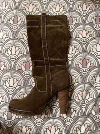 Botas altas de color marrón. - Diseño de caña alta. - Tacón de bloque. 5cm - Cierre de cremallera lateral.