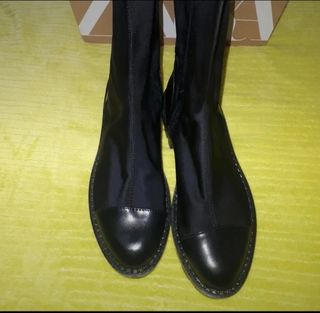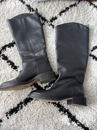Botas altas de piel de la marca Zara. - Material: Piel. - Color: Negro.
