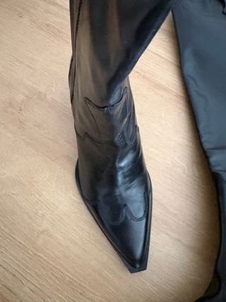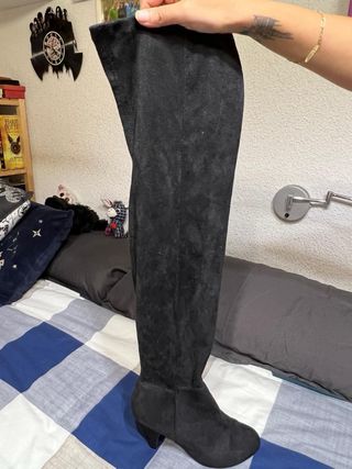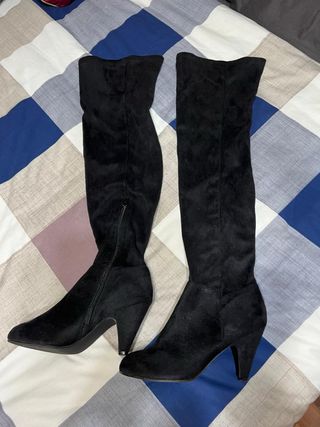 Botas altas de estilo por encima de la rodilla negras. - Material de ante. - Tacón fino. - Cierre de cremallera lateral. Se han usado un par de veces.