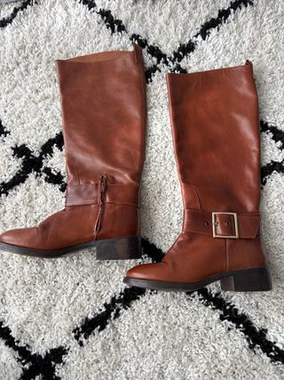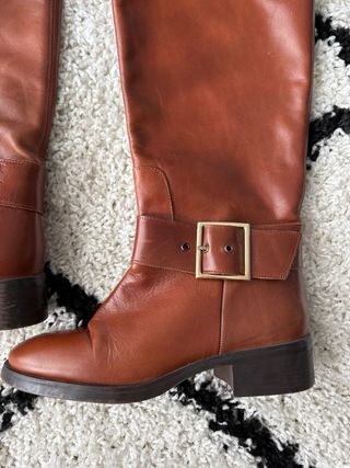 Botas altas de piel de la marca Zara. - Material: Piel. - Color: Marrón. - Diseño alto. - Detalle de hebilla dorada en el lateral.