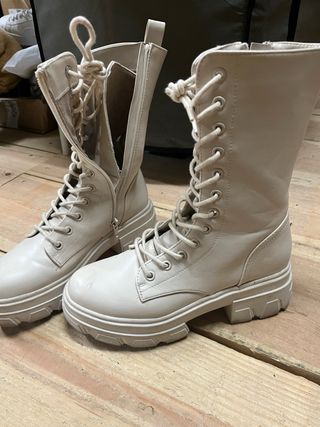 Botas altas de estilo moderno con cordones. - Diseño de caña alta. - Cierre de cordones. - Suela gruesa y robusta.