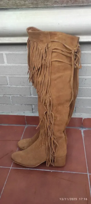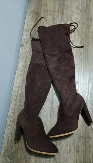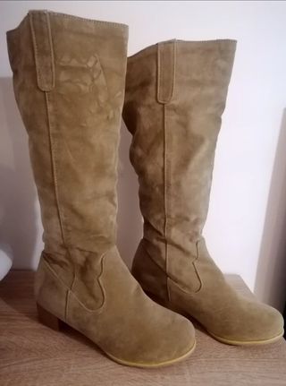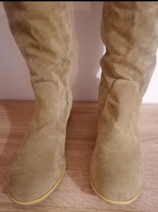 Botas altas de serraje, las compré de segunda mano muevas pero me están pequeñas, puestas solo unas horas. Descripcion en las fotos.