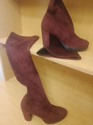 Preciosas botas altas burdeos de ante talla 37 puestas solo una vez.