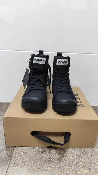 Botas altas de la marca Ecoalf en color negro. Perfectas para un estilo urbano y cómodo. - Cierre de cordones. - Suela de goma. - Detalle de etiqueta en la lengüeta.