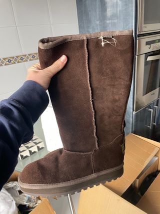 Botas altas de la marca UGG modelo Chesnut en color castaño. Talla 40. Perfectas para mantener los pies calientes. - Exterior de ante. - Forro interior de borreguito. - Altura aproximada de la bota: 35 cm (14") - Circunferencia aproximada: 42 cm (16,5") - Piel de oveja merino de doble cara, 100 % australiana, de grado A - Suela de EVA ligera y flexible. - Hecho a mano en Australia - Unisex Más cositas en mi perfil