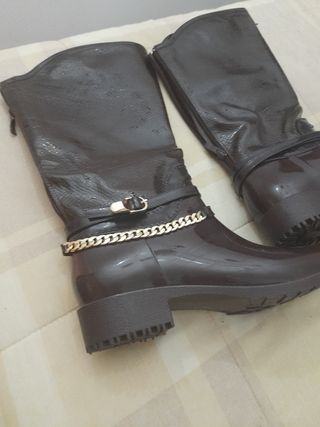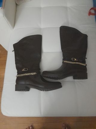 Botas altas de agua, color negro, número 38,valen para montar a caballo y para la lluvia, están impecables.