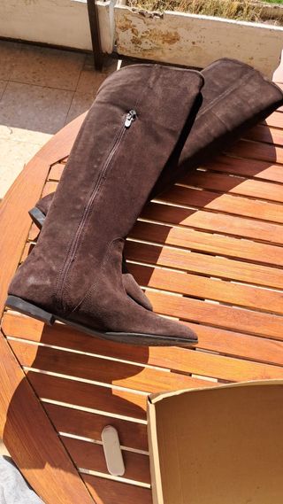 Botas altas de piel de serraje en color marrón de la marca fórmula joven utilizadas tan solo en una ocasión