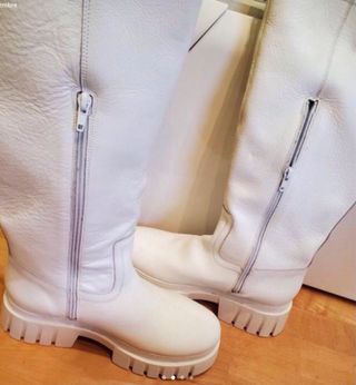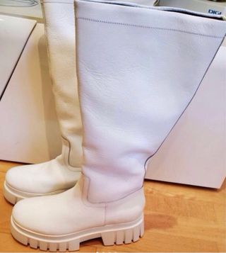 Botas altas de cuero en color blanco. Tienen una suela gruesa y resistente. - Material: Cuero - Diseño: Alto - Suela: Gruesa y dentada