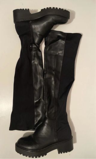 Botas altas de la marca Pull&Bear. - Diseño de caña alta. - Combinación de materiales. - Suela de plataforma gruesa.
