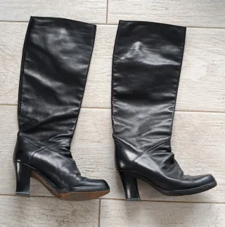 Botas altas de piel de alta calidad, fabricadas en Italia de Immagini. Un clásico que no pasa de moda. Muy buenas! Talla 36. Color negro. - Material: Piel. - Diseño: Alto. - Origen: Italia.