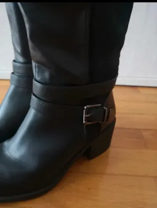 Botas altas negras de piel con cremallera, talla 37. Lleva 1 hebilla a un lado. No se han usado. Nuevas!