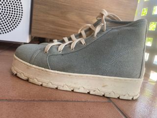 Botas altas de la marca Zara en color azul vaquero. Son ideales para el otoño. - Son de lona. - Tienen una suela gruesa y blanca. - Están en buen estado.