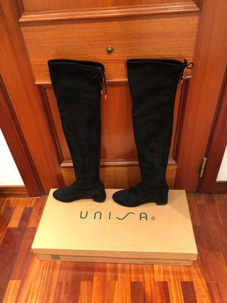 Botas altas de piel auténtica muy buenas de la marca Unisa. - Material exterior de piel. - Diseño mosquetero. - Cierre con cordón ajustable en la parte superior. Hechas en España