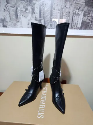 Botas altas Zara negras con tiras