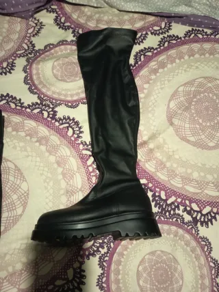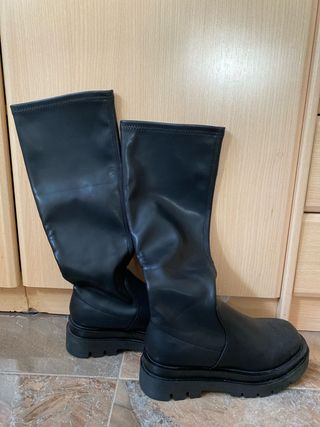 Botas altas de estilo moderno con suela de plataforma. Talla 39, yo soy una 38 me quedan bien igual un pelin sueltas. Solo usadas 1 vez. - Diseño de caña alta. - Suela gruesa con buen agarre. - Material sintético.
