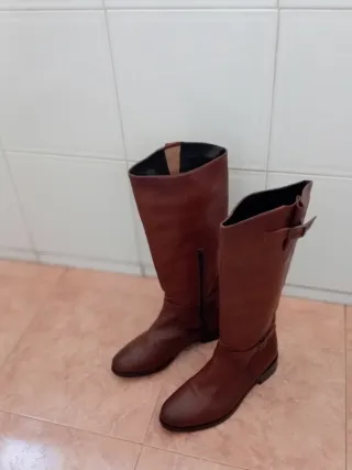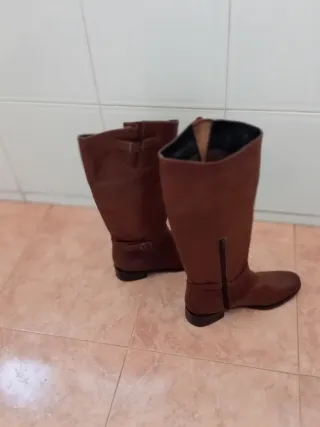 Botas altas de cuero color marrón. - Diseño clásico y elegante. - Cierre lateral. - Suela resistente.