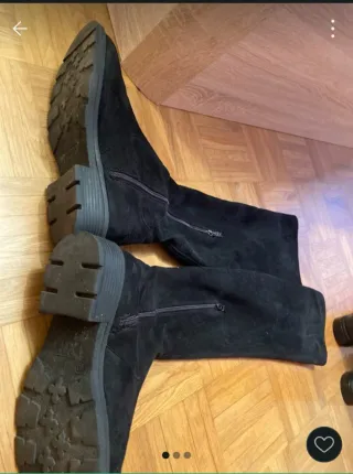 Botas altas de ante con un diseño moderno, perfecto estado, están tal como se ven en las fotos. - Material de ante. - Detalle de ojales en la parte superior. - Cierre de cordones en la parte trasera. Envío a través de Wallapop, recoger tienda Retro, zona el palo Malaga