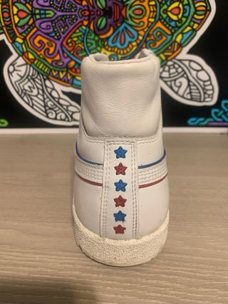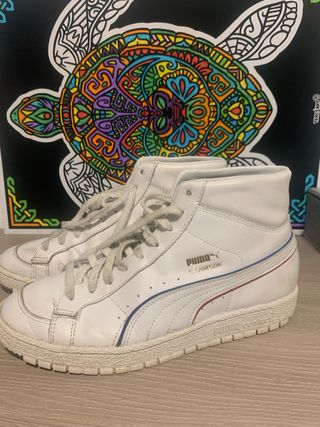 Botas altas de la marca Puma, modelo Ralph Sampson. - Diseño clásico en color blanco. - Detalles de líneas en azul y rojo. - Suela de goma. - Cierre con cordones.
