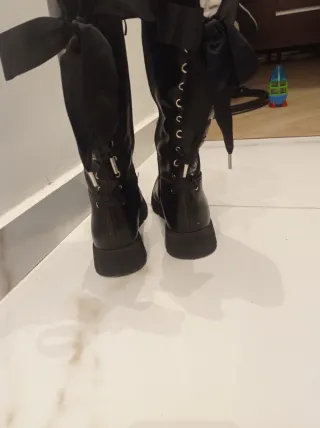 Botas altas de estilo moderno. - Diseño con cordones. - Detalle de lazos. - Suela gruesa.