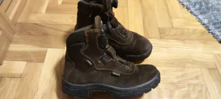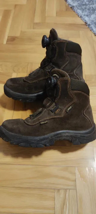 Botas de montaña Chiruca en color marrón. Perfectas para senderismo y actividades al aire libre. piel nobuck hidrofugada goretex suela vibram su precio original es de 180e. Las usé solo para una excursión. Están sucias de haber estado guardadas en un almacén pero no estan adaptadas al pie por el poco uso.