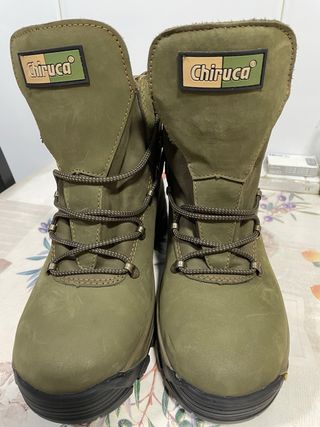 Botas de montaña y caza Chiruca en color verde oliva. Perfectas para actividades al aire libre. - Diseño robusto y duradero. - Cierre con cordones. - Logo de la marca en la lengüeta.