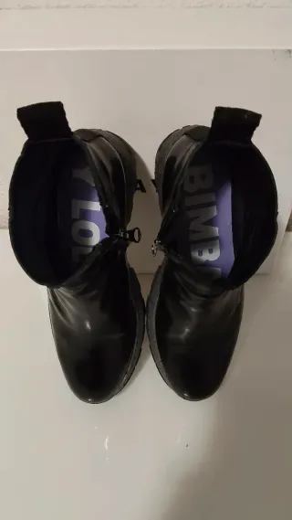 Botines bimba y lola color berenjena. Prácticamente nuevos, un par de puestas. Incorporado el calcetín de borreguito con el logo de Bimba y lola. Talla 38. Super cómodas!!! No entra el agua!! Precio original 98€