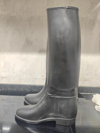 🌧️ Botas de agua de caña alta, color negro mate. Diseño clásico y elegante tipo Hunter. Perfectas para días de lluvia o campo con total estilo. ✅️ Talla: 36 EU 📏 Medidas exactas para ajuste perfecto: 👢 Altura pierna: 35cm ⭕ Contorno pantorrilla: 36cm 👣 Plantilla interior: 23cm 🧥 Interior forrado con un precioso estampado de cuadros. ✨ Estado: Tienen marcas normales de uso en el acabado mate (ver fotos), pero están perfectas para seguir dándoles caña. ¡No calan nada! 📦 Hago envíos rápidos por Wallapop o trato en mano. #botasagua #botasnegras #botas #modaagua #lluvia #tall36 #wellies #hunter #invierno #botasaltas
