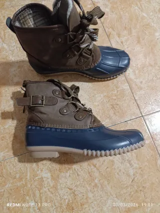 Muy poco uso Como nueva Ver suelas en fotografia Talla 39 (detalle en fotografia) OJO! es un 39 con tallaje justo. Asi que si estas entre 39-40 no la compres. Ideal 38-39 - Impermeables - Cierre com cremallera. - Suela de goma antideslizante con agarre y adherencia - Interior forrado para mayor calidez. Valoradas en 40€ Dispongo de otro par en modelo diferente para niño (cierre velcro) en talla 34 - WATERPROOF. Resistentes al agua Valoradas en 40€
