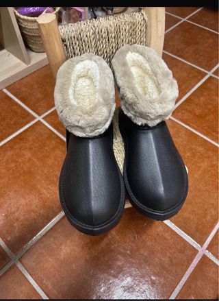 Botas de agua muy calentitas y cómodas. - Forro interior de pelo. - Color negro exterior y beige interior.