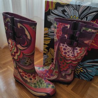 Preciosas botas altas de agua de la marca Gioseppo y talla 40. Tienen un estilo de bota de montar a caballao y están acabadas en un estampado muy atractivo. También tienen forro interior. Son unas botas catiuscas de goma ideales para días de lluvia. Se venden por no ser la talla adecuada.