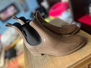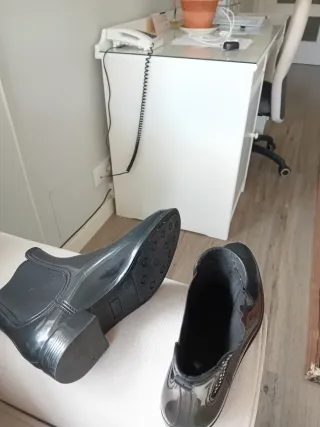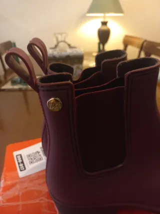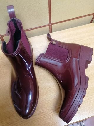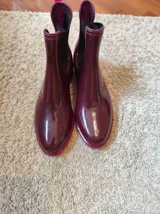 Botines de agua en color granate.Como nuevos usados dos veces - Diseño brillante. - Detalle elástico lateral.