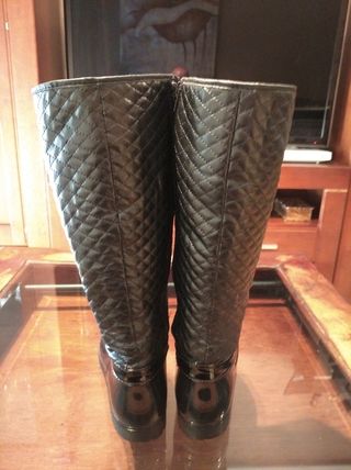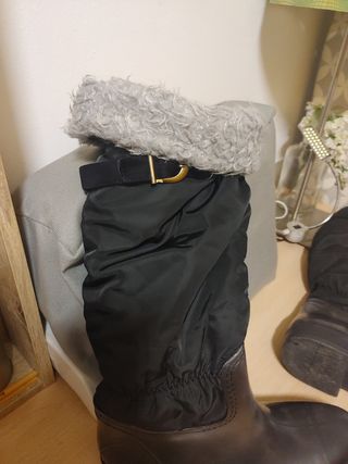 Impermeables ideales para días de lluvia y también para vestir. Muy poco uso, como se ve en las fotos. Color negro. Fáciles de poner con las cremallera en el lateral. Correas decorativas con hebilla. La caña acolchada y flexible y por dentro llevan pelito polar. Botas altas de agua Mustang. - Diseño acolchado en la caña. - Detalle de hebilla y correa. - Cremallera lateral. HAGO ENVÍOS rápidos y lotes por Wallapop. Entrega en zona Bagatza. OFERTA!! 3 X 4€ = 10€ !! Puedes elegir 3 anuncios de 4€ y todo te sale a 10€ !!.