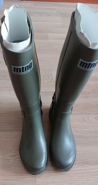 botas de agua mustangs nuevas, me las he puesto un rato conservo su caja pero esta un poco rota.
