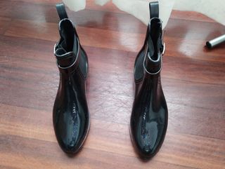 Botines de agua Mustang de charol negro con cremallera lateral y elástico. Con forro interior, muy calentitas. Katiuska - Diseño moderno y elegante. - Suela de goma con buen agarre. Un solo uso ENVIO CON PUNTO PACK