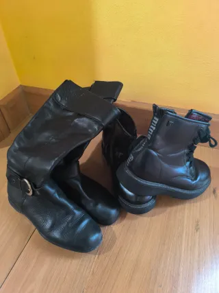 Se venden dos pares de botas de piel negras.Mustang y agua viva. - Talla 36. - Material: Piel. - Color: Negro.