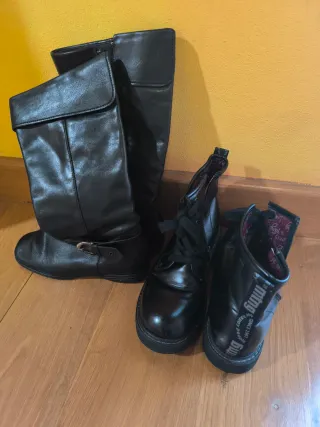 2 pares botas piel negras T.36,10 € los 2 pares.
