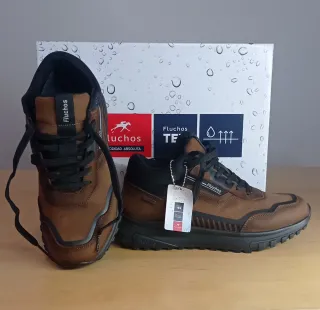 Botas de la marca Fluchos, diseñadas para ofrecer comodidad y protección. -Estan sin estrenar con etiqueta y caja. -Es un 39 pero calza a un 40 normal, (yo uso un 40 y me van perfectas). -Resistente al agua Waterproof. - Material exterior en tonos marrones y detalles en negro. - Cierre con cordones. - Suela de goma resistente.