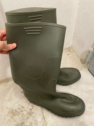 Botas de agua de trabajo en color verde oliva Son muy resistentes y cómodas Tallan pequeño, equivalen a 1 numero mas las 42 serian un 43 y las 43 serian un 44 Las de talla 42 tienen tambien la puntera de hierro 20€ cada par, 30€ los dos