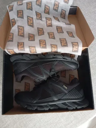 NUEVO, EN CAJA ORIGINAL Talla EUR = 43 Talla EE.UU. = 9 Color = Negro, blanco Puntera de seguridad = Sí Tipo de puntera de seguridad = Compuesto Antiestático = Sí Protección ESD = No Tipo de cierre = Cordones Resistente al agua = Sí Resistente a: Penetración, Perforación, Deslizamiento, Penetración de agua (WRU) Características de seguridad adicionales = A Calificación de seguridad EN ISO 20345 = S3 Tipo de suela media = No metálico Material de la suela = Goma Antideslizante = Sí PVP en tienda = 86 € (2 pares disponibles)