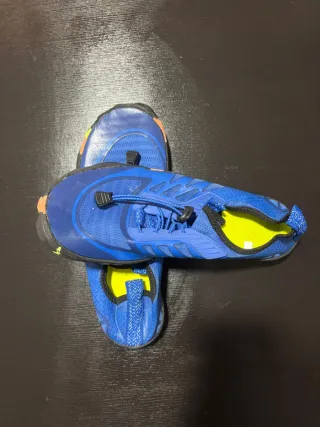 Zapatos de agua diseñados para un secado rápido y comodidad. - Diseño en color azul con detalles multicolor. - Cierre con cordones elásticos y ajuste rápido. - Suela flexible y antideslizante. - Tirador trasero para facilitar su colocación.