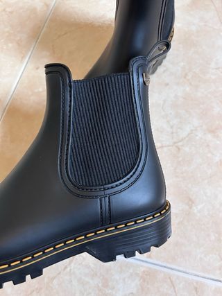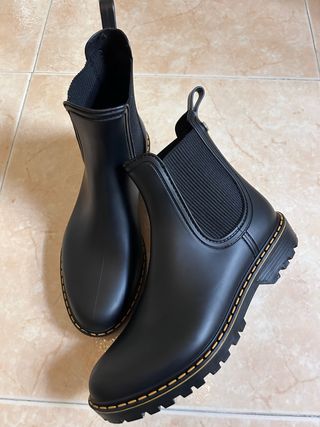 Botas de agua, color negro, talla 39. Media caña (botines). Incluyen plantillas de abrigo tipo borreguito. Están en muy buen estado.