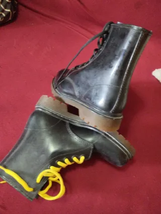 Botas de agua estilo militar t.37 pero un poco grande. - Diseño de caña alta. - Suela gruesa y resistente.