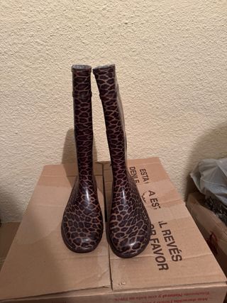 Botas de agua con un llamativo estampado de leopardo. - Diseño de caña alta. - Suela de goma resistente. - Estampado animal print.