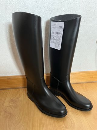 Botas de agua altas de color negro. - Diseño clásico y funcional. - Suela de goma antideslizante. Contorno parte alta de la bota: 34cm. La bota esta prácticamente nueva, un solo uso.