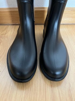 Botas de agua Oysho en color negro, talla 38. Son suaves por dentro. - Exterior de goma. - Diseño tipo botín Chelsea. - Suela de goma.