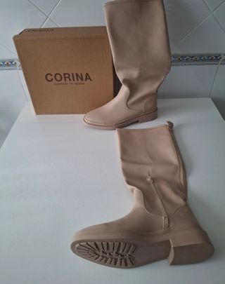 Botas de agua de la marca Corina en color crudo. Utilizadas una vez - Talla 40. - Diseño alto. - Cremallera lateral.